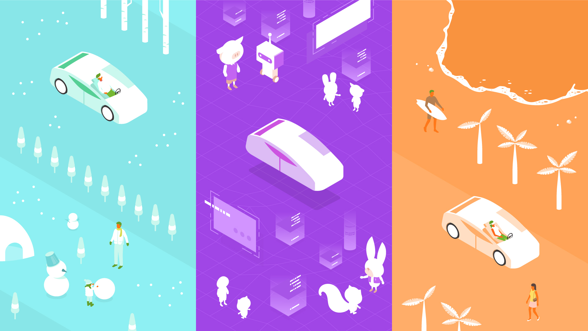 現実空間も仮想空間も好きなときに自由に移動。自動運転とメタバースが普及した未来では、車で移動している間も、VRゴーグルをかけ、リアルとバーチャルを自由に行き来できるようになってるかもしれません。北海道から出発し、バーチャル空間で仕事や遊びに集中している間に、気づいたら沖縄に到着なんてことも。空間に縛られず、好きなときに好きなところに居られるようなライフスタイルを選ぶ人も増えるかもしれません。